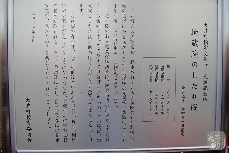 地蔵院のしだれ桜は、樹齢350年前後と推定されており天然記念物に指定されています。