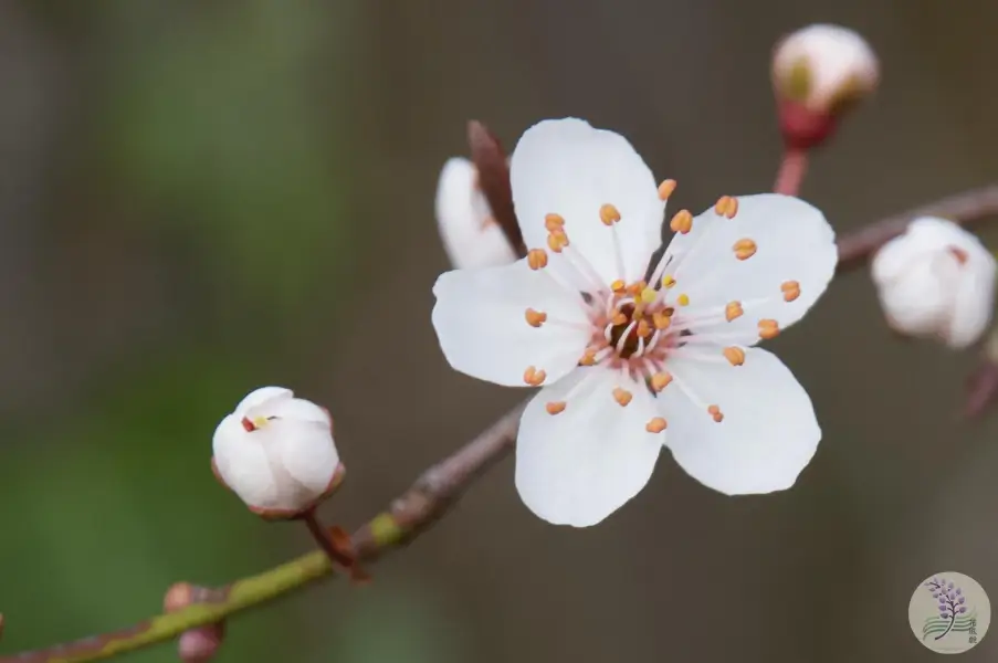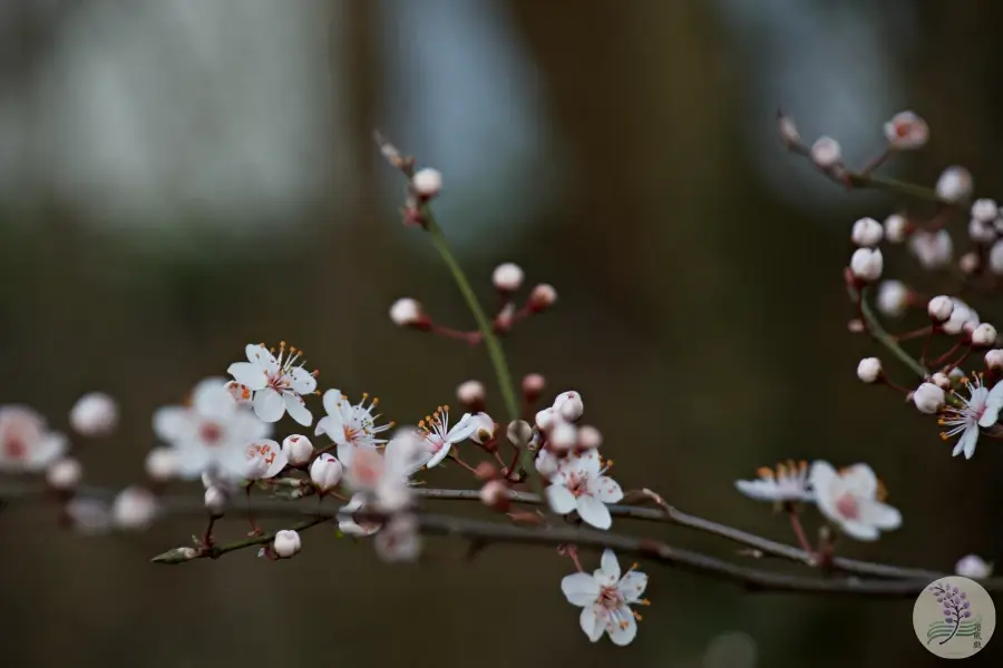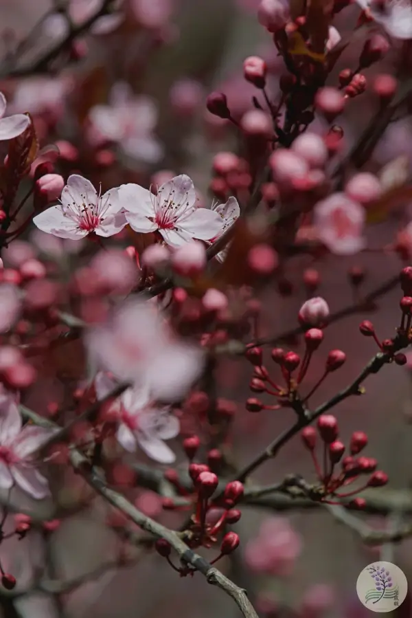 花自体は5枚の花弁を持ち、桜よりも少し丸みを帯びた印象を与えます。ドイツ語で「血(Blut)のプラム(Pflaume)」を意味するBlutpflaumeという名前は、そのドラマチックな葉の色から名付けられました。
