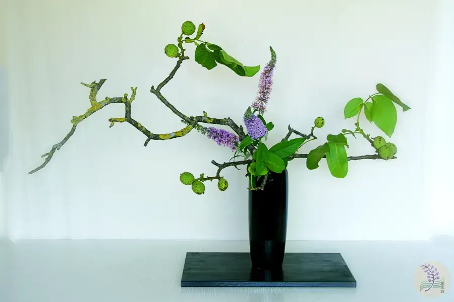 | 花材: | クルミ、フサウジウツギ(ブッドレア) |