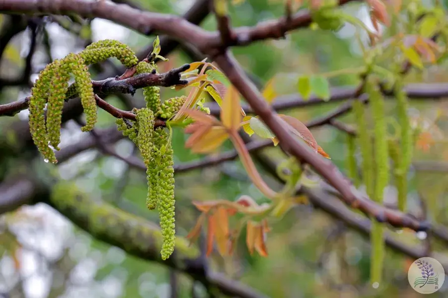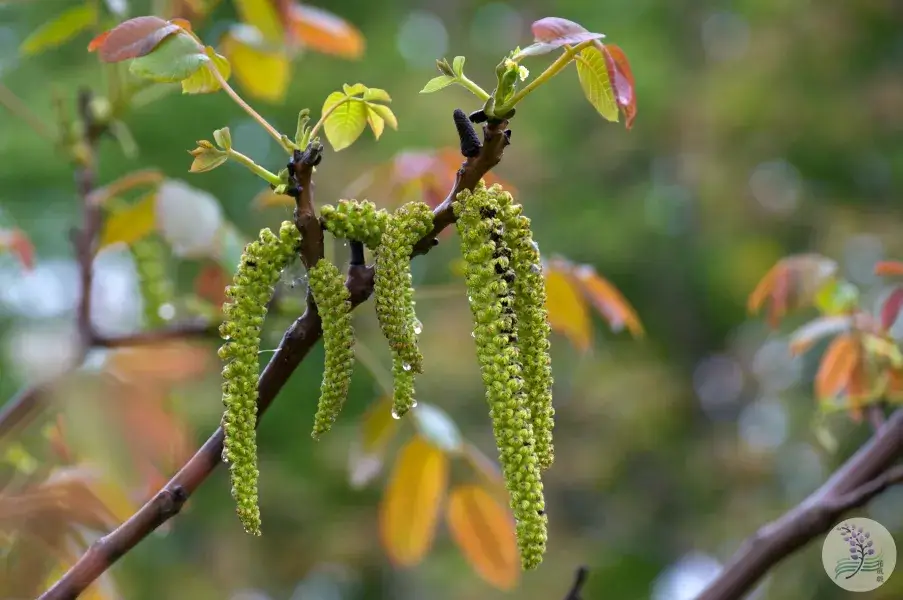 クルミは、雌雄同株の落葉高木で、春になると雄花と雌花がそれぞれ異なる形で咲きます。