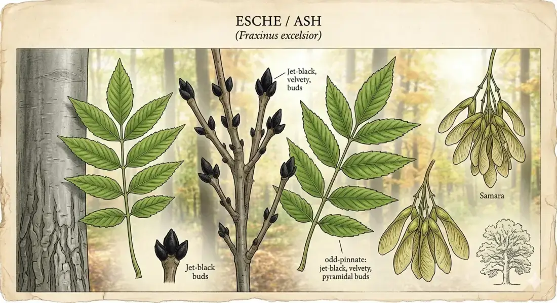 モクセイ科トネリコ属。ドイツ語でEsche、学名は Fraxinus excelsior です。ドイツの森や公園、街路樹として非常によく見られる高木で、カバノキ属などと並んで春の主要なアレルゲンとして知られています。